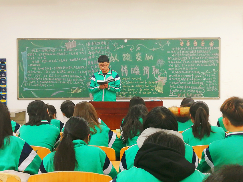 团支书通过ppt、视频、讨论等形式,向同学们普及了“冬至”传统节日的由来,讲述了饺子的寓意和文化内涵,部分班级结合营养学、国学知识,向同学们介绍了不同馅料饺子的寓意:勤财饺(芹菜饺子)、久财饺(韭菜饺子)、添财饺(甜馅饺子)等。护理五高1504班在此次团课中表现突出,团歌洪亮,板报内容丰富,让同学们感受到冬至的温暖。(撰稿:pp电子游戏平台网站 刘宇 审稿:吴亚飞)
