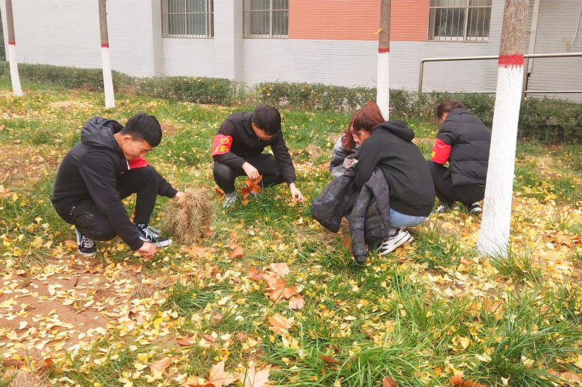 凛冬渐至,pp电子学生党支部组织团总支青年志愿者协会成员对公共楼前后绿化带的落叶、垃圾及宣传栏进行了清洁护理。青年志愿者协会部长耿泽雄带领10名学生志愿者清洁pp电子游戏平台网站公共教学楼公各层楼厕所内的小广告,为学生们营造了安全文明的生活环境。苏建军带领红袖章志愿队和10余名学生志愿者清理了公共教学楼周围的白色垃圾,并对教学楼周围的宣传栏进行了彻底擦洗,让我校校园环境展现新颜。(撰稿:pp电子游戏平台网站 刘萌 审稿:吴亚飞)