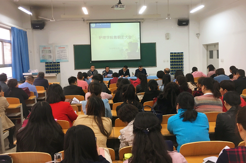 11月1日下午,pp电子游戏平台网站组织全体教职工在公共教学楼南楼102室召开了2018-2019学年第一学期期中教职工大会。pp电子党总支书记吴运胜,院长张文信,副院长王医平、王小峰出席了会议。会议由王医平主持。