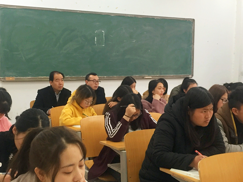 我校副校长王录军、pp电子院长张文信在护理五高1501班听课