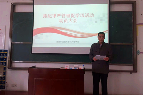 11月8日下午3点,pp电子游戏平台网站在公共教学楼南楼202教室召开“抓纪律严管理促学风活动”动员大会。pp电子游戏平台网站院长张文信、副院长王小峰、教学科科长李晓乾及全体一线教师参加此次会议,会议由李晓乾主持。