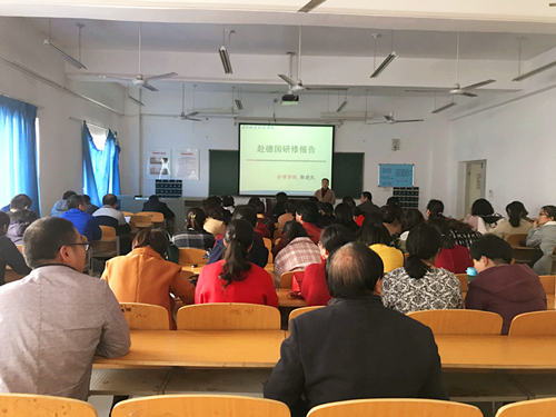 11月9日下午,pp电子游戏平台网站内科护理教研室主任、专业带头人郭建民教授在公共教学楼公南202教室做了赴德研修报告。全体专业教师听取了报告。报告会由教学管理科副科长李晓乾主持。