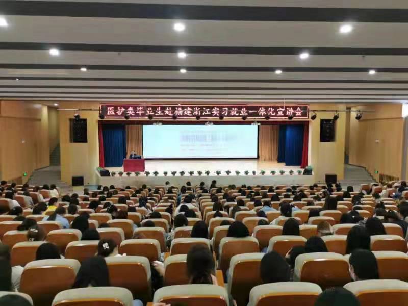 为进一步推进我校实习就业工作,4月19日下午,pp电子游戏平台网站在图书馆一楼报告厅参加了我校医护类毕业生赴福建浙江实习就业一体化宣讲会。pp电子招就科副科长何宇及300余名学生代表参加了会议。