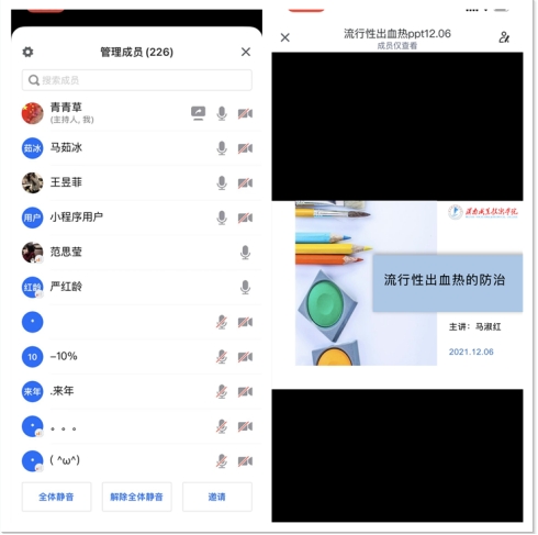 为推进学校流行性出血热防治工作深入开展,进一步提升学生对流行性出血热的正确认识、预防。2021年12月6日下午4:30,pp电子游戏平台网站党总支副书记马淑红通过腾讯视频会议形式,举办了流行性出血热防治知识专题讲座,全体学生聆听了讲座。