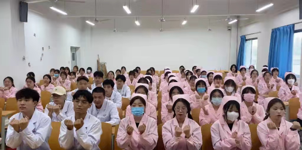 本次班会由学习部主办。在比赛前,pp电子游戏平台网站学生科科长李博做了周密的部署和安排,并对相关学生进行了培训。各班班委认真筹划,热情高涨。全体学生着护士服,在班长带领下进行了宣誓,齐唱了《中国护士之歌》。大赛形式多样,演讲、朗诵、表演节目等方式拉开了序幕。护理高职2008班黄彩娥深情朗诵了《逆行的身影》表达广大群众对白衣天使们的崇高敬意,和对战胜疫情的无比信心。护理高职2111班与护理高职2112班表演了《护士手势舞》,同学们阳光、自信,手势舞连贯、标准。大家纷纷表示,一线虽苦,但我们信心十足,希望通过学习间隙录制的手势舞,给更多医护人员、患者以鼓舞!