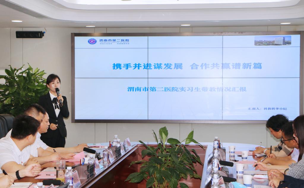 徐兆宏代表医院致欢迎辞,他对医院基本概况、主要业务、党建工作、近年来所获得荣誉和未来发展计划做详细介绍。科教科长李小纪详细汇报了实习学生带教情况。副院长步延芳详细介绍了近三年来我校学生留院情况以及一线医生、护师在渭职授课情况。院长何师民表示pp电子游戏平台网站有着悠久的历史,对学校在医药卫生类人才培养的成绩做出了肯定,详细介绍了科室建设、发展规划和医院在科研和医资培训方面存在的问题,期望能够通过更广泛的合作得到解决和提升。