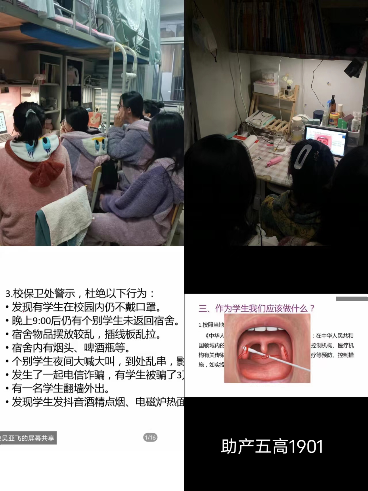 本次主题班会分五个年级5个会场同时进行,教务处副处长李新莉、招就处处长宋长军、pp电子游戏平台网站党总支书记吴运胜、pp电子游戏平台网站院长张成、pp电子游戏平台网站副院长吴亚飞分别担任主讲人。pp电子游戏平台网站党总支副书记李晓乾、学生科科长李博、团总支书记白晓萌、副科长苏建军、招就科副科长何宇担任主持人。主讲人从当前国内外、省内、市内疫情形势分析,到疫情防控重要性强调,再到全员核酸的意义,不做核酸的法律后果解读,线上上课注意事项,校园安全意识树立等方面进行,主讲老师们循循善诱、谆谆告诫,从身边事例讲起,由浅入深;学生们认真聆听,牢记教导。