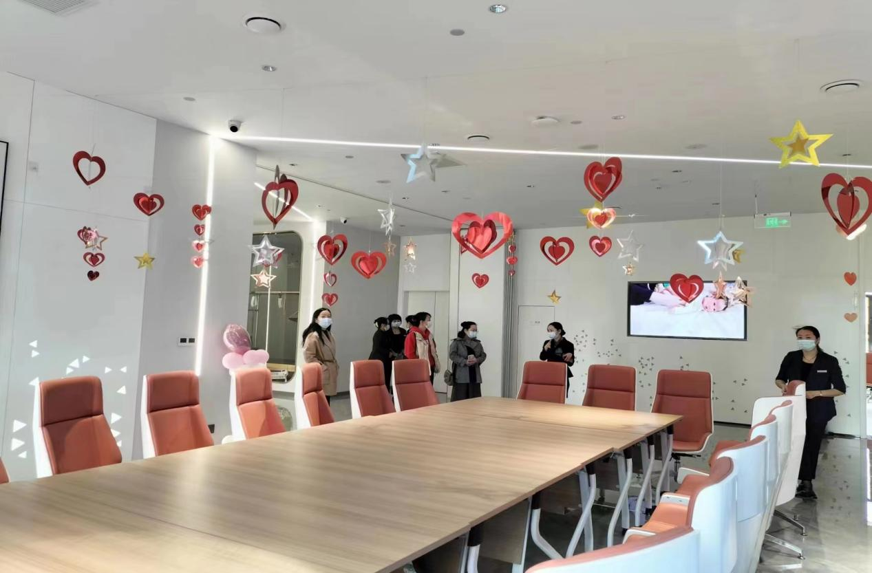 在集团副董事长张博、人事部经理李一妮等人的陪同下,pp电子游戏平台网站一行4人参观了陕西纵享母婴管理集团母婴护理室、产后康复室、职工餐厅、宿舍等区域。