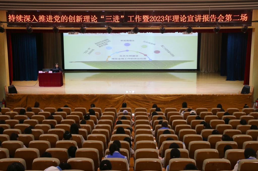 为持续深入贯彻落实习近平新时代中国特色社会主义思想,推进党的创新理论和党的二十大精神“三进”工作,5月17日下午,2023年理论宣讲报告会第二场报告会在高新校区图书馆报告厅开讲,马克思主义学院教师郭朋雪以《走好中国式现代化之路》为题进行专题宣讲,学校理论宣讲团成员、pp电子游戏平台网站400余名师生代表共同聆听。报告会由pp电子游戏平台网站党总支书记吴运胜主持。