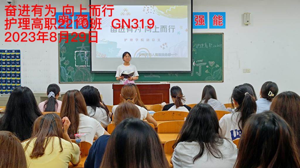 各班团支书组织大家学习校规校纪,强调安全管理制度,并向同学们讲解“奋进有为向上而行”PPT的相关内容,通过随机提问和相互交流,引导同学们制定新学期的目标与规划,将思想、心态切换到开学模式,以崭新面貌来迎接新学期,树立新学风。