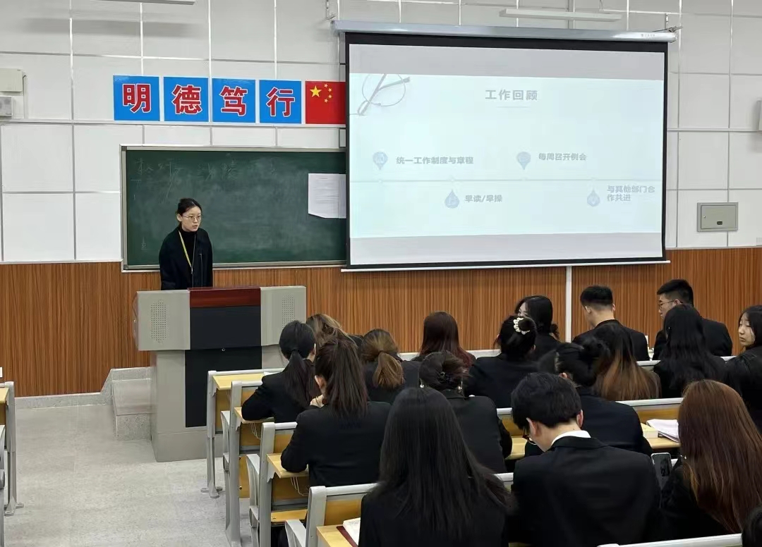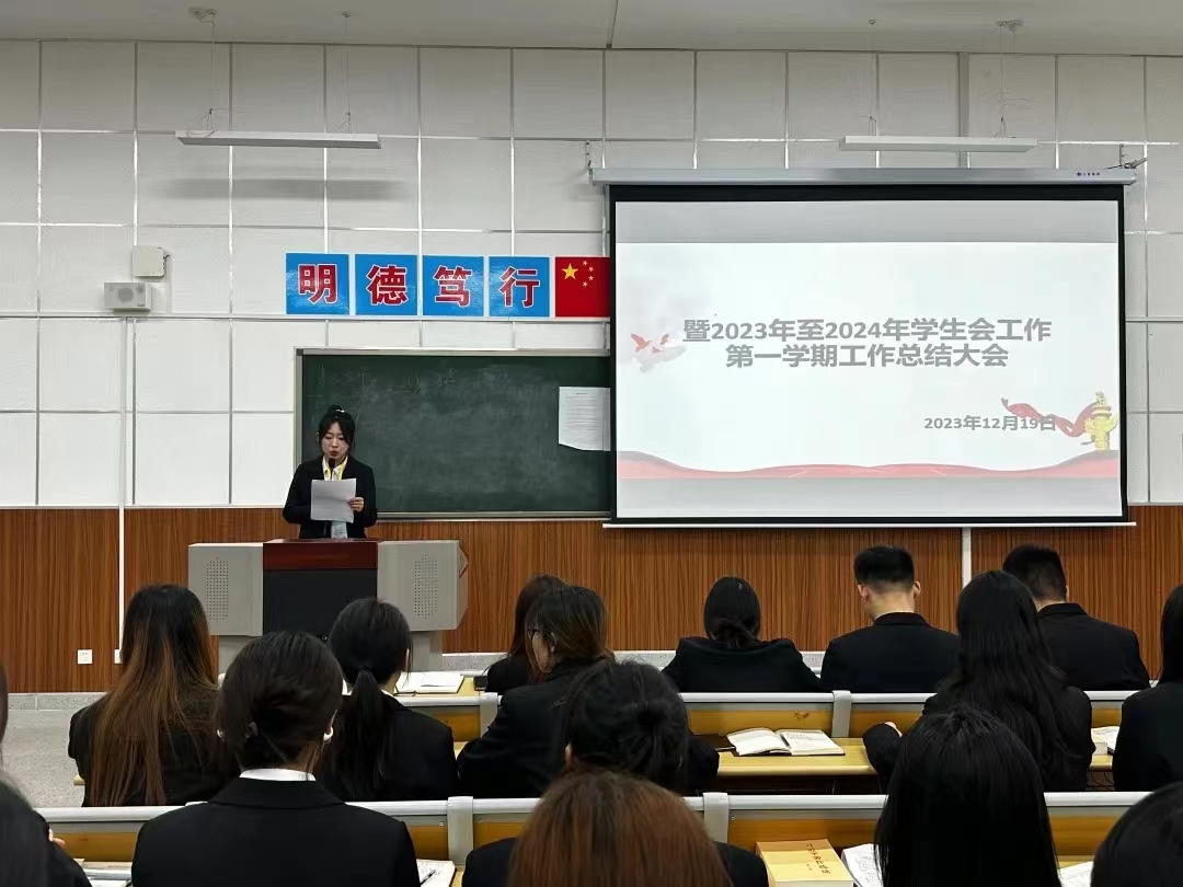 为回顾总结过去一学期学生会及相关部门的工作,深入剖析存在的问题,全面提升学生会工作能力,更好服务学生,pp电子游戏平台网站于12月19日召开2023—2024届学生会第一学期工作总结大会。会议由主席团成员苏可心主持,pp电子游戏平台网站全体学生会干部以及学生会代表参加。