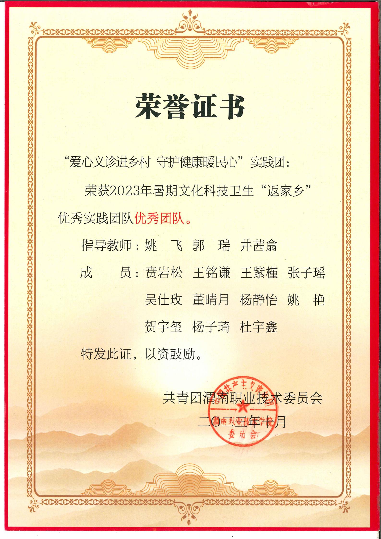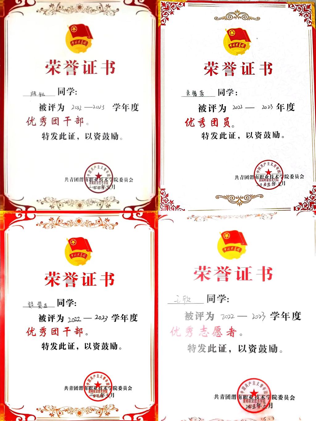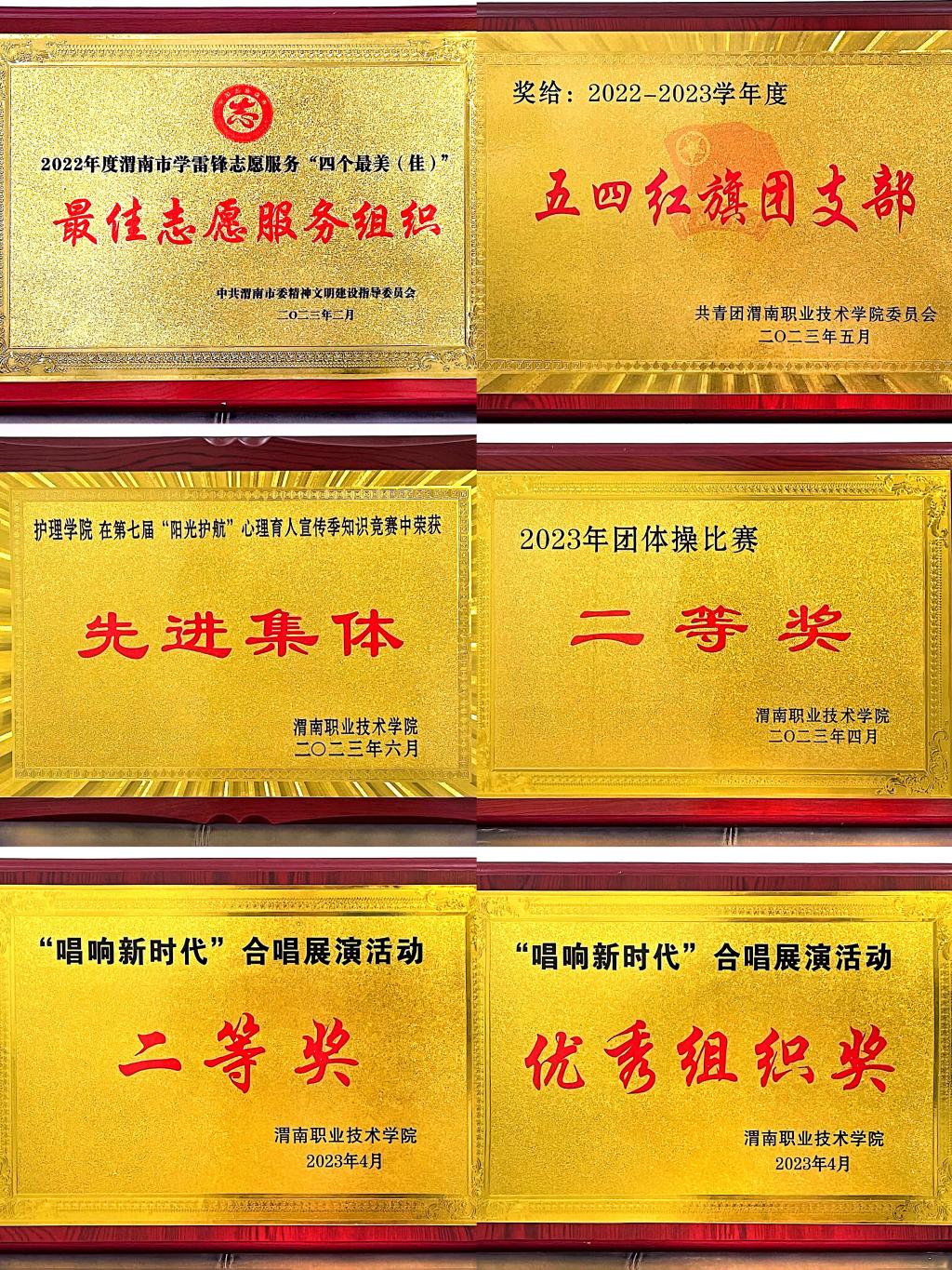 pp电子游戏平台网站团总支被中共渭南市委精神文明建设指导委员会评为“最佳志愿服务组织”,被共青团渭南市委评为“渭南市五四红旗团支部(团总支)。护理高职2203班团支部等6个团支部获“五四红旗团支部”,郭瑞等47名师生获“优秀团干部”称号,张岚等100名同学获“优秀团员”称号,孙佳乐等14名同学获“优秀青年志愿者”称号。