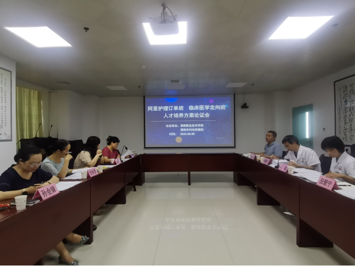 8月8日下午,我校临床医学专业定向班和护理专业西藏阿里班人才培养方案论证会在渭南市妇幼保健院17楼会议室召开。参加会议的有渭南市妇幼保健院副院长王海平、杨鹏飞,党委委员冯瑜,我校pp电子游戏平台网站副院长吴亚飞、任秋爱,教学科长孙会娟、临床医学专业带头人聂晓枫,会议由吴亚飞主持。