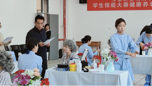 老年护理与保健和健康养老照护赛项选手们经过刻苦训练,充分准备,在赛场上展示出为老服务人才技能水平和专业素养。赛后评委郭宇森老师充分肯定了学生们的技能水平和努力付出,并对他们提出了更高的期望,要求他们在人际沟通、人文关怀、心理素质、临场应变等方面加强训练,同时希望同学们接下来积极备战省赛。