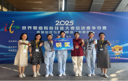 “这份铜奖,是学子们用无数汗水换来的荣誉,是指导教师倾注心血培育的成果,更是学校多年来深耕中职护理专业建设、聚焦护理技能育人的生动缩影。”近年来,我校持续深化“岗课赛证”融合育人模式,围绕临床护理核心技能,建成国家级护理专业实训基地,引入临床真实护理案例150余个,配备静脉输液模拟人、急救护理模拟系统等先进实训设备,培养省级以上护理技能竞赛优秀指导教师15名,护理专业连续多年在全国全省护理技能竞赛中斩获佳绩,育人成效显著。此次世赛获奖,不仅是对学院护理教学成果的高度肯定,更为后续护理专业建设与技能人才培养提供了宝贵经验。