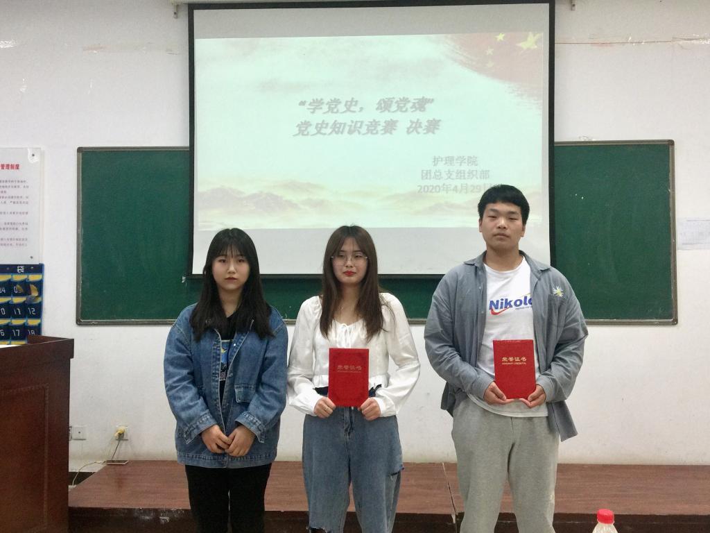 4月29日下午,“学党史,颂党魂”党史知识竞赛决赛在公南105教室举行。本次比赛采用现场竞赛现场评比的方式,题目包含党史党章、党的理论知识等,比赛试题分为必答题、抢答题、风险题三种形式,共40题每题10分共400分。在抢答环节,参赛成员通过手机平台上抢答,答题错误还可以再次抢答。各参赛成员准备充分,充满自信,全场氛围激烈,展示了他们近期党史知识学习的成果。经过激烈的角逐,护理高职2004班陈金、护理高职2006班陈倩茹获得第三名,护理高职2004班张栋栋、护理高职2004班雷骐伊获得第二名,护理高职2003班贾倩茹荣获了冠军。