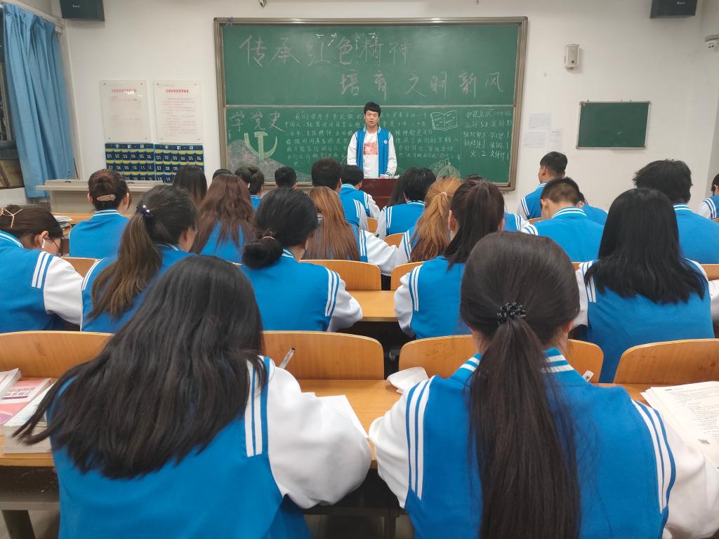 团课由各班团支书主讲。团支书围绕五四精神、红船精神、长征精神、抗疫精神、脱贫攻坚精神等内容展开,和同学们观看了视频短片,激励青年学生从五四精神中汲取营养,肩负起历史重任;铭记红船精神,牢记初心使命,时刻听党话、跟党走;传承中国共产党人和红军将士用生命和热血铸就的伟大长征精神,做到心中有信仰、脚下有力量;弘扬抗疫精神,自觉在挑战面前展现出青春激昂的风采;传承伟大事业孕育出的脱贫攻坚精神,努力开拓创新、攻坚克难、不负人民。