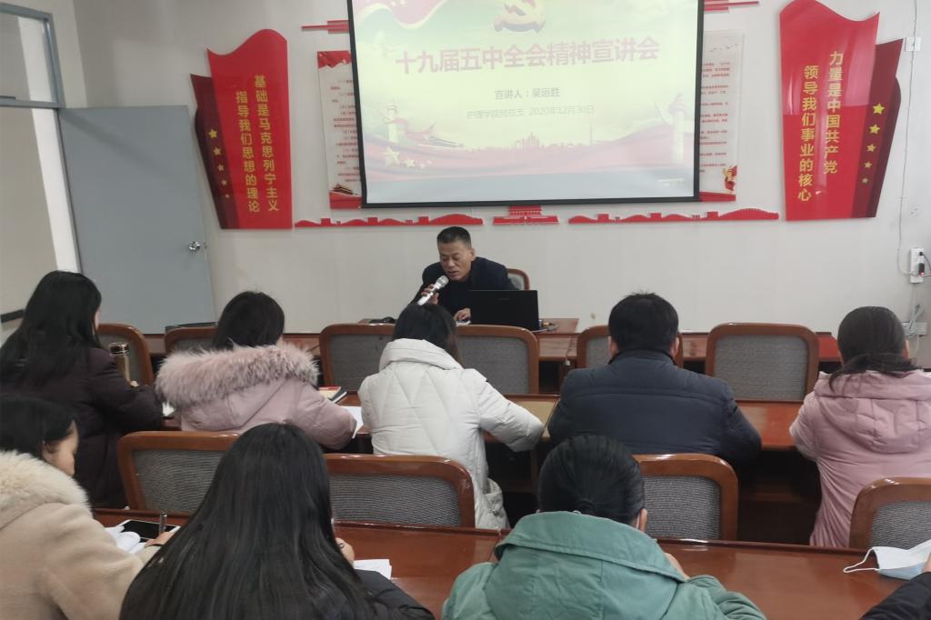 12月30日下午,pp电子游戏平台网站党总支组织全体党员干部、20余名入党积极分子及教师代表在医训楼南楼第二会议室召开了学习贯彻党的十九届五中全会精神宣讲会,pp电子党总支书记吴运胜担任主讲,党总支副书记李晓乾主持了宣讲会。