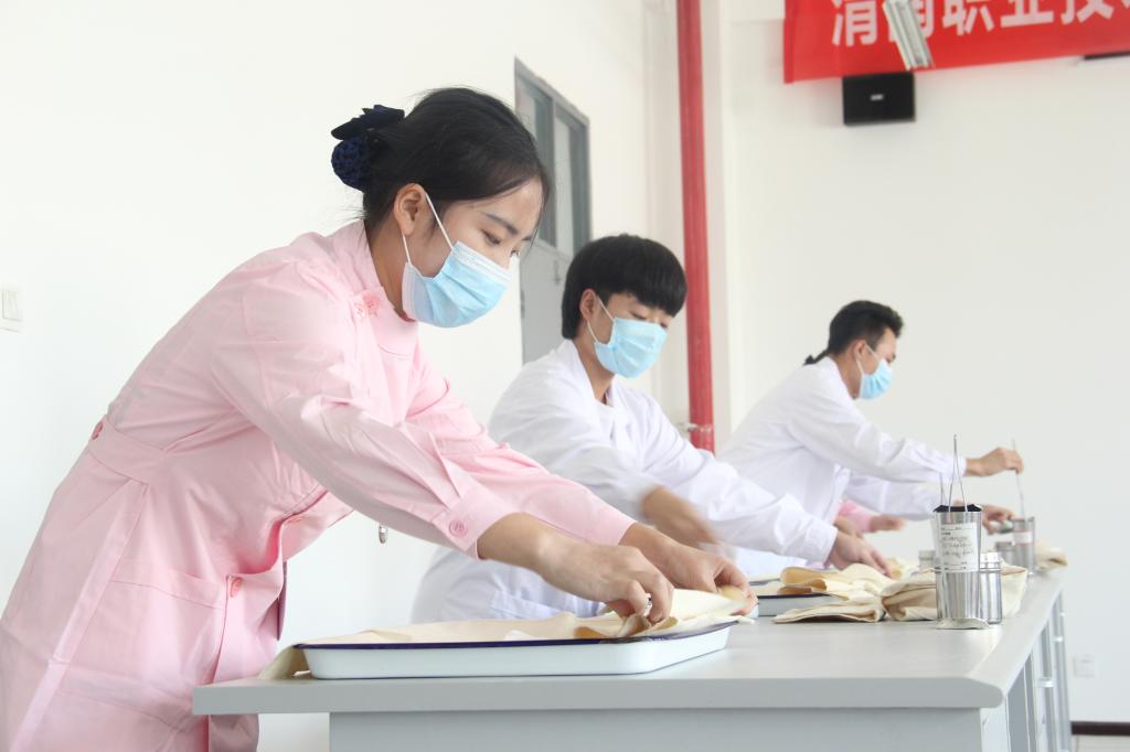 9月23日下午,校级学生职业技能大赛(护理组)在医训楼北楼410实训室举行。学校教务处实训科科长王秋焕、pp电子游戏平台网站副院长吴亚飞观摩了比赛,内护教研室主任郭建民等7名经验丰富的教师担任评委,共有16名学生参加了本次大赛。