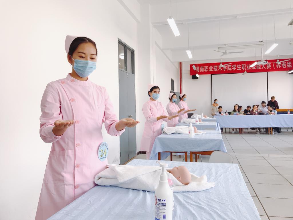 为了夯实学生的理论基础,强化操作技能,根据学校工作安排,pp电子游戏平台网站于9月23日下午在医训楼北楼312实训室举行了2020年学生技能大赛(养老组)的比拼。pp电子副院长任秋爱等出席了比赛,祁晓民等5名专业老师担任大赛评委。进入决赛的24名选手在血压测量、轮椅运送老年人和新生儿抚触三项常用护理技术展开激烈的角逐。