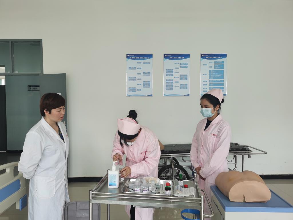 考试期间,pp电子游戏平台网站党总支书记吴运胜、院长张成、副院长吴亚飞和教学科长王媛等对考试情况进行了巡视和检查,领导们一致认为本次考试学生思想重视、监考老师执考严格,起到了督促和检验学生专业技能的良好作用。吴运胜和张成在观看完一位学生的考核过程后饶有兴致地进行了点评并给予学生最中肯的建议和充分肯定。执考老师杨文娟在学生完成肌肉注射考核后及时指出了学生存在的问题并现场演示了排气、消毒和注射定位的方法,使学生通过考试发现短板、弥补不足,对实习工作树立了信心。