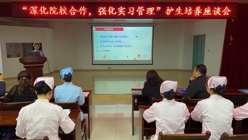 市妇幼保健院护理部主任冯瑜对我校实习检查表示了高度重视和热烈欢迎,在学术厅组织了“深化院校合作 强化实习管理”的座谈会。座谈会上护理部干事常晶介绍了实习管理制度和实习流程,两位带教组组长介绍了科室培训计划、课程设置以及科室规定,三位优秀实习生分别汇报了四个月实习收获、对未来学习的计划和对带教老师真挚的感激之情。通过与实习生的座谈,我校看到了学生对医院管理的肯定,对带教老师认真负责态度的感恩,他们不仅收获了知识与技能,更懂得了和患者的沟通技巧,培养了对患者的仁爱之心;通过与医院带教组长的沟通,也收集了医院对我校人才培养给出的宝贵建议。