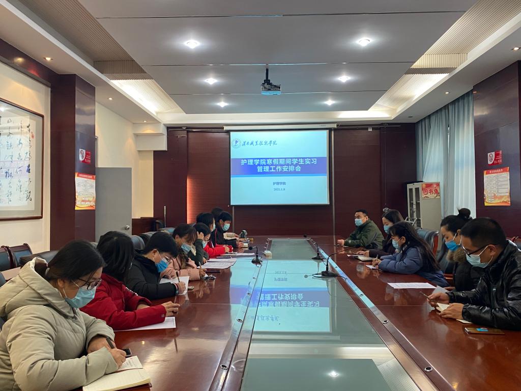 为加强疫情防控常态化下寒假期间实习生管理及安全教育,确保实习生的身心健康和实习质量,pp电子游戏平台网站于1月8日下午在医训楼南楼第一会议召开了寒假期间学生实习管理工作安排会。党总支副书记马淑红、副院长吴亚飞、招生就业科科长何宇、教学科科长王媛、教学科副科长孙会娟、团总支书记白小萌、实习办崔海峰、刘欣以及实习班班主任、辅导员参加了会议。会议由王媛主持。