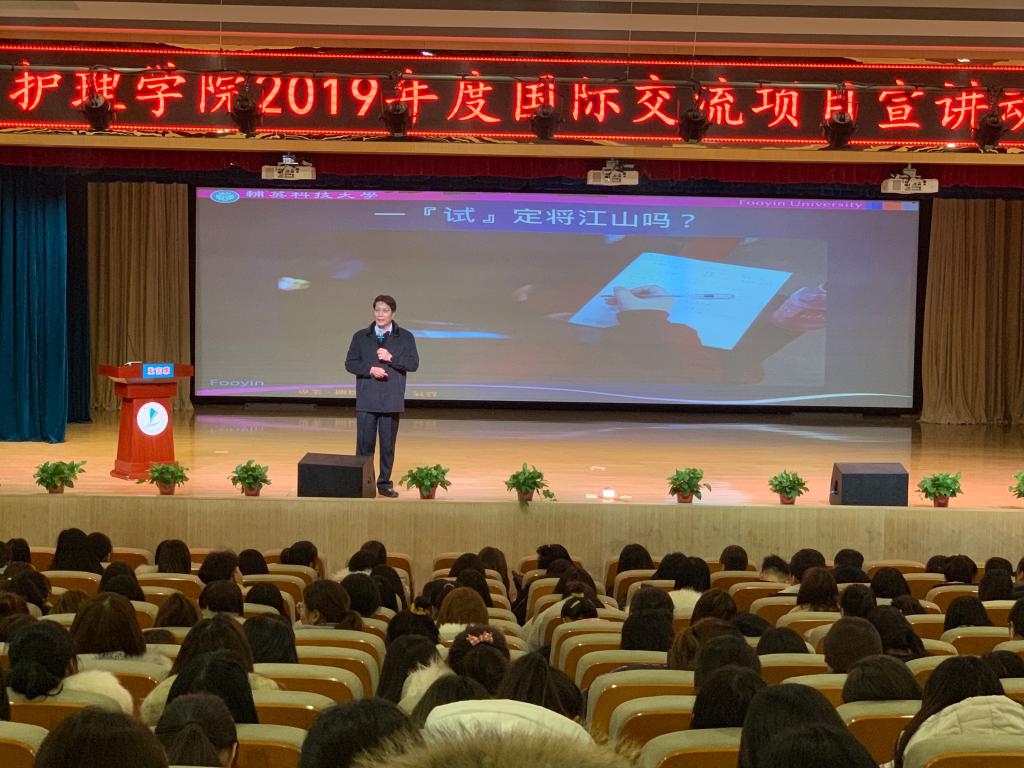 为拓宽学生实习就业渠道,提高学生职业素养,12月10日晚,pp电子游戏平台网站在图书馆报告厅召开了2019年度国际交流项目宣讲会,pp电子党总支副书记马淑红,以及2018级高职全体学生参加了宣讲会。我校对外交流与合作处的郑言老师、台湾辅英科技大学国际处副处长叶金鳞老师以及香港凤凰国际教育集团驻pp电子游戏平台网站对外交流处日本项目负责人冯骊霞老师分别对各自的项目进行了介绍,pp电子辅导员李潮主持了宣讲会。