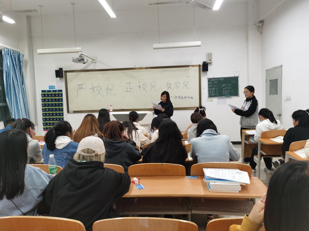 为了进一步增强pp电子学生纪律观念,规范学生日常行为,创建“校风正、学风浓”的良好育人环境,11月2日下午,pp电子游戏平台网站组织全体在校生以班级为单位召开了“严校纪 正校风 促学风”主题班会,班会由各班辅导员、班主任主持。