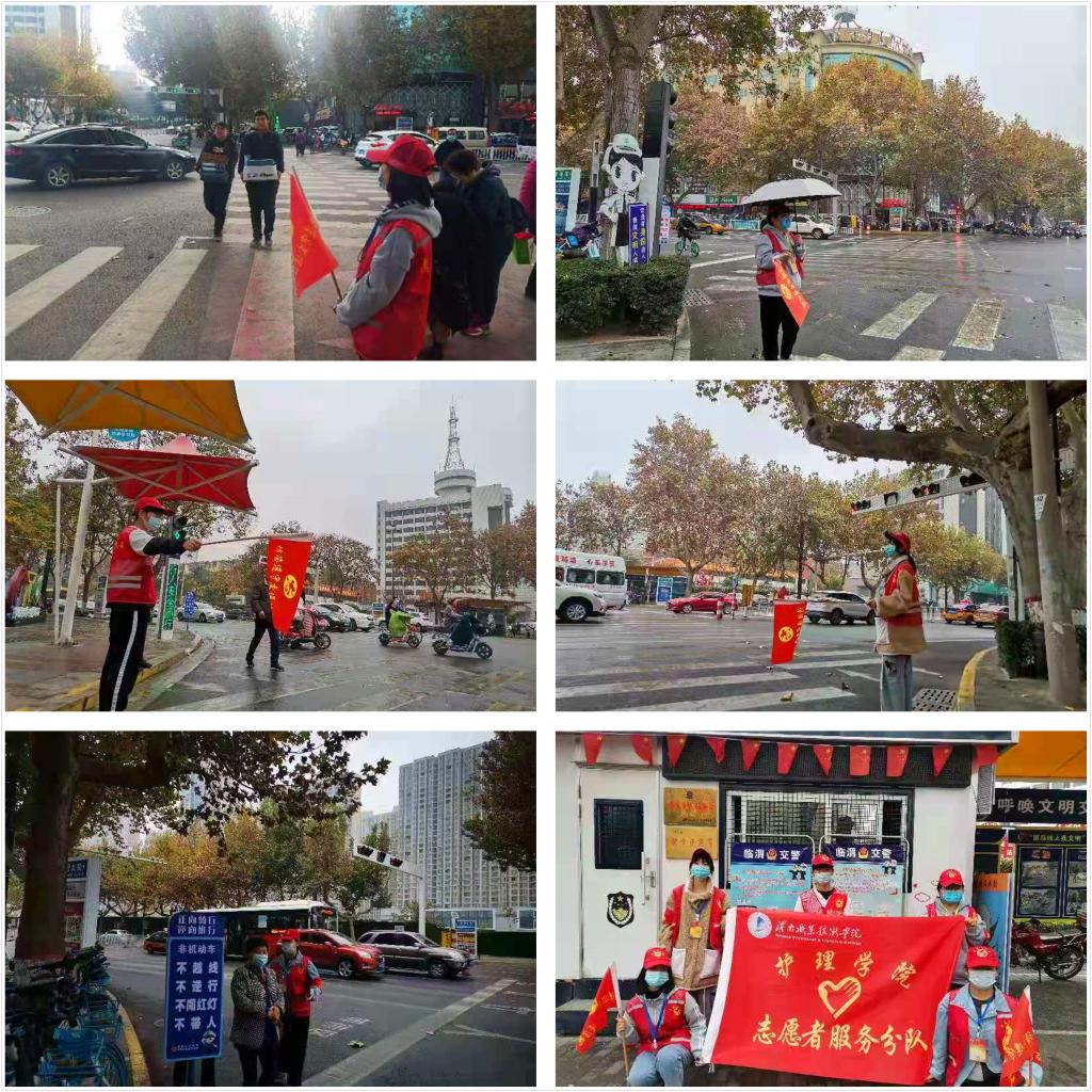 11月17日上午和11月19日下午,pp电子游戏平台网站志愿者服务队10人到市区信达广场附近十字路口当起"临时交警”。