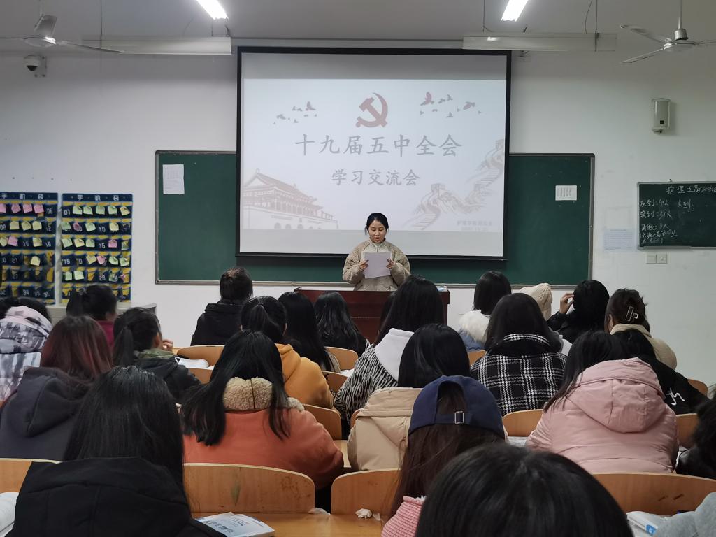 11月26日下午,pp电子游戏平台网站团总支在公共教学楼南楼319教室召开了“学习十九届五中全会精神”学习交流会,团总支书记白小萌、副书记党员敏、杜磊,各部门部长以及40名学生代表参加了交流会,交流会由团总支秘书部靳欣芝主持。