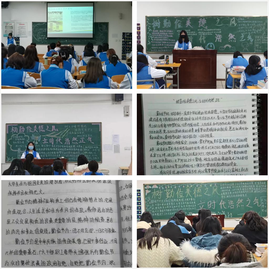 本次团课由团支书主讲。团支书带领班级学生学习了习近平总书记对制止餐饮浪费行为培养节约习惯作出的重要指示精神;带领学生观看了《一粒米的世界》《一粥一饭不易且重大》等视频,浏览了校园铺张浪费的图片,分享了伟大领袖毛泽东主席和周恩来总理勤俭节约的事迹。通过学习PPT、浏览视频和图片,广大学生认识到大学校园铺张浪费的普遍性和严重性,深刻体会到勤俭节约的重要性。护理高职2010班学生齐声诵读了明代朱柏庐的《夫子治家格言》:“一粥一饭,当思来处不易;半丝半缕,恒念物力维艰。”助产高职1901班学生邓佩琪分享了她的学习感悟。她认为,勤俭节约是中华民族的传统美德,是兴国兴邦的重要基石。作为大学生,我们要带头增强“厉行勤俭节约,反对餐饮浪费”的意识,自觉把勤俭节约、艰苦奋斗的理念内化于心,外化于行,从自身做起,珍惜每一顿餐饭,节约每一粒粮食,用良好的作风引领社会风尚。(撰稿:pp电子游戏平台网站 王蓉 审核:李晓乾)