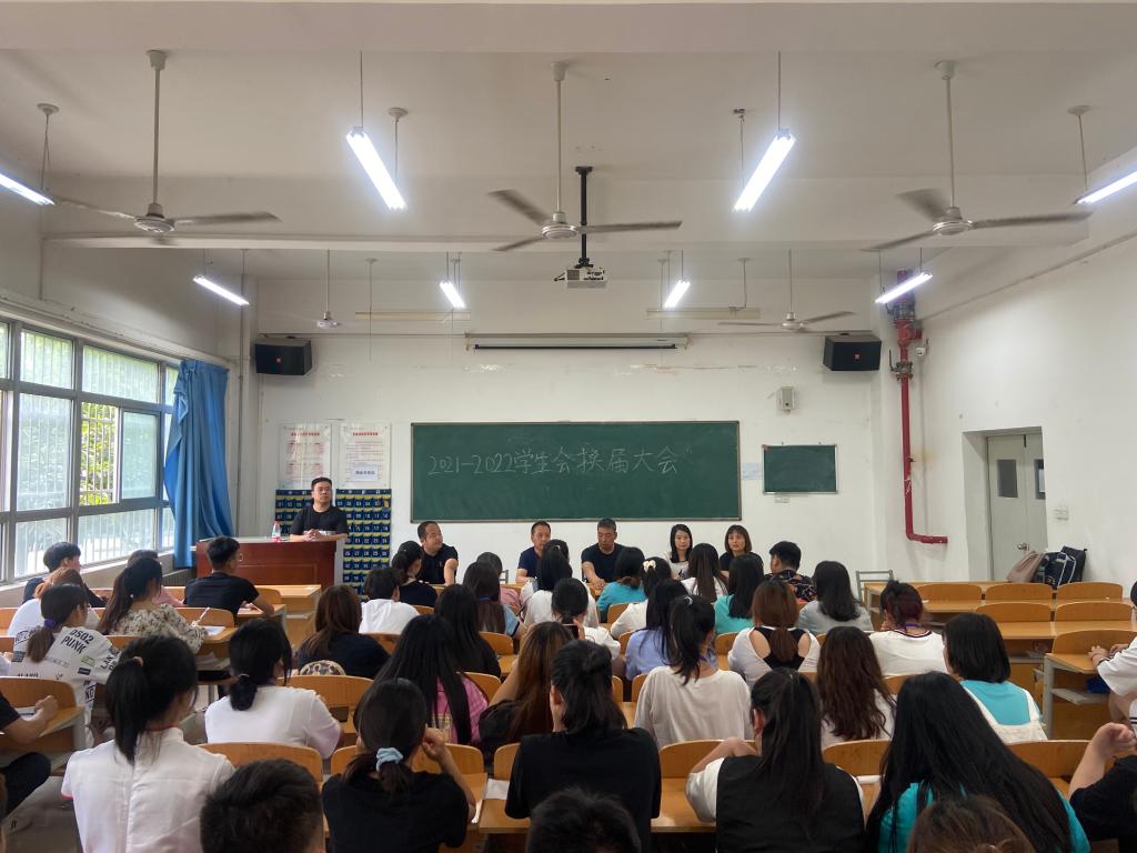 为了增强学生会工作的凝聚力,弘扬学生责任、担当精神,6月9日下午,pp电子游戏平台网站2021-2022年学生会换届大会在公共教学楼南楼105室召开。pp电子游戏平台网站学生管理科科长李博,副科长苏建军,10余名辅导员及100余名学生代表参加了大会。辅导员李潮主持了会议。
