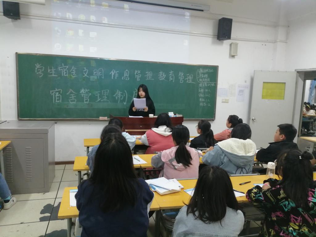 为了有效加强学生宿舍管理,2021年10月19日晚,pp电子游戏平台网站组织开展了《加强学生宿舍管理,扎实推进“三进”工作》的活动,本次活动由各班班长主持,全体学生参加。