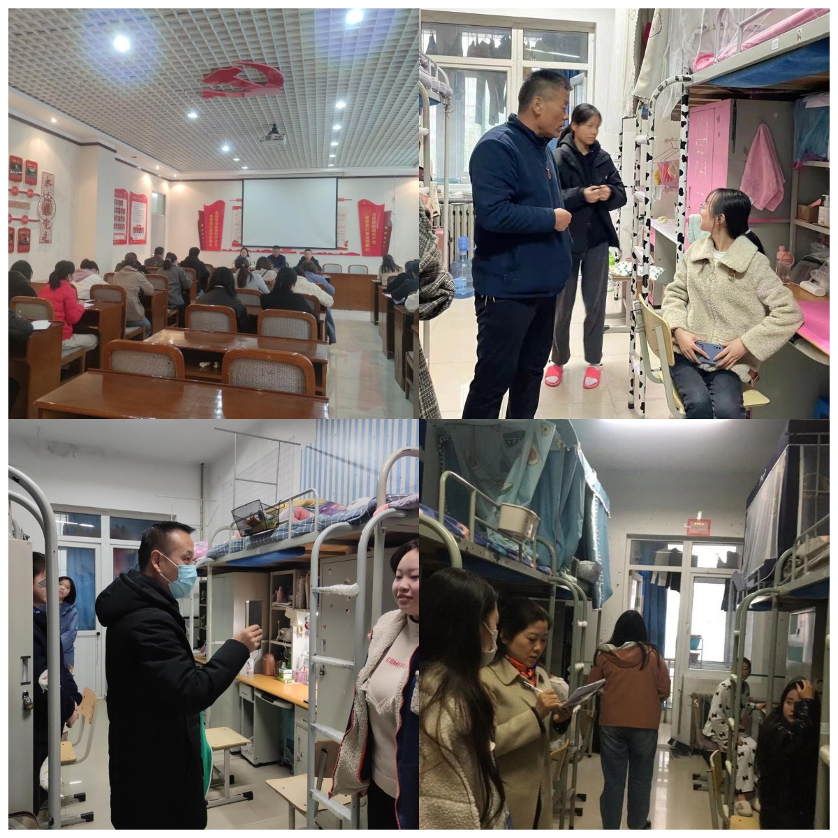 会后,吴运胜带领全体学管干部、党员、入党积极分子,非党员辅导员对各自包联学生宿舍及楼层共计459个宿舍逐一进行了检查,并进行了现场反馈交流,提出了整改的要求。(撰稿:张朵 终审:马淑红)