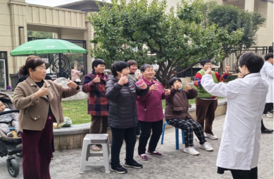 在社区服务点,党员教师和学生们发挥专业特长,为居民测量血压和肩颈按摩,教大家做手指操,热情细致的解答群众的疑问,针对不同病症和个体差异给大家讲解注意事项及常见病、多发病的预防知识。