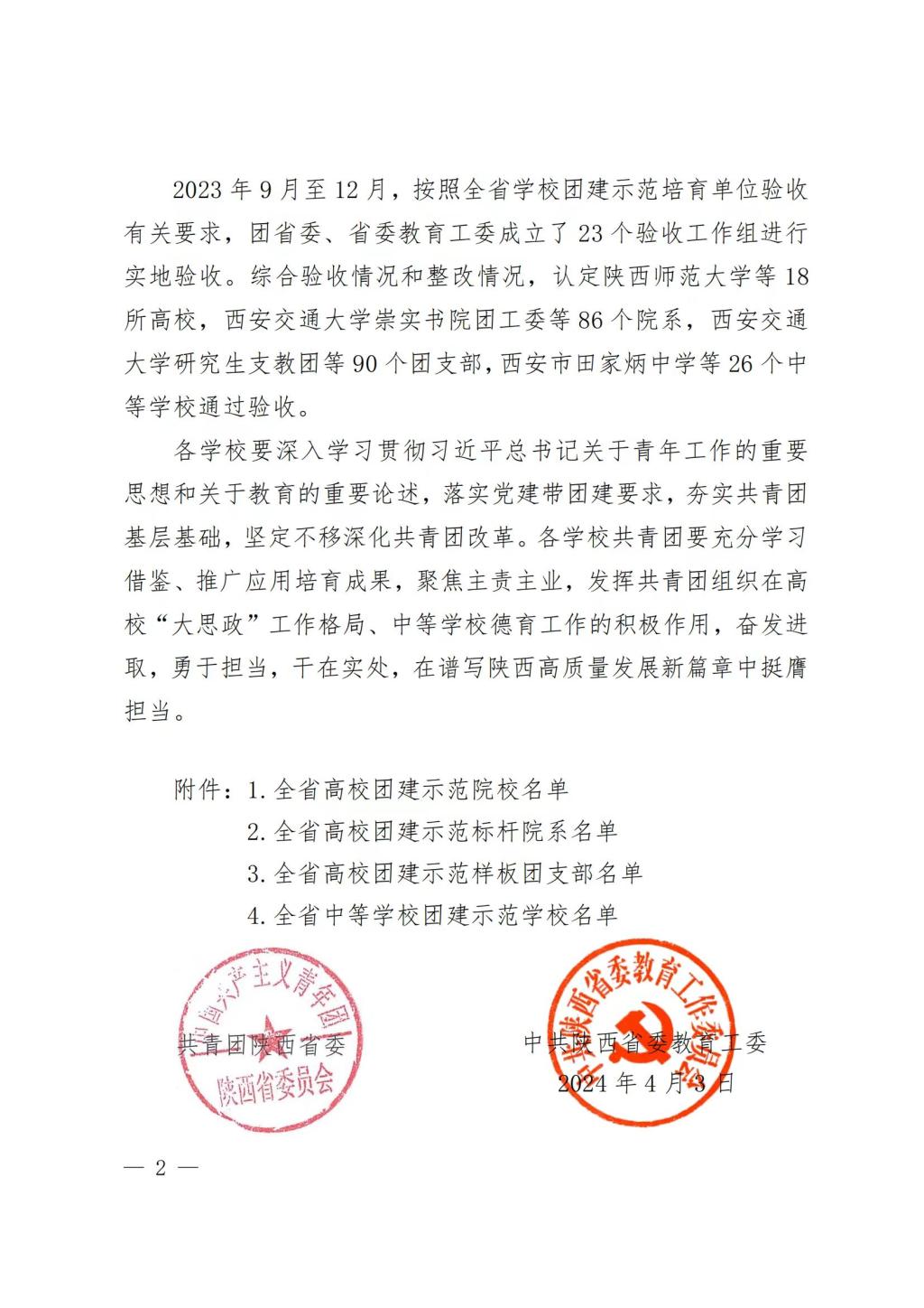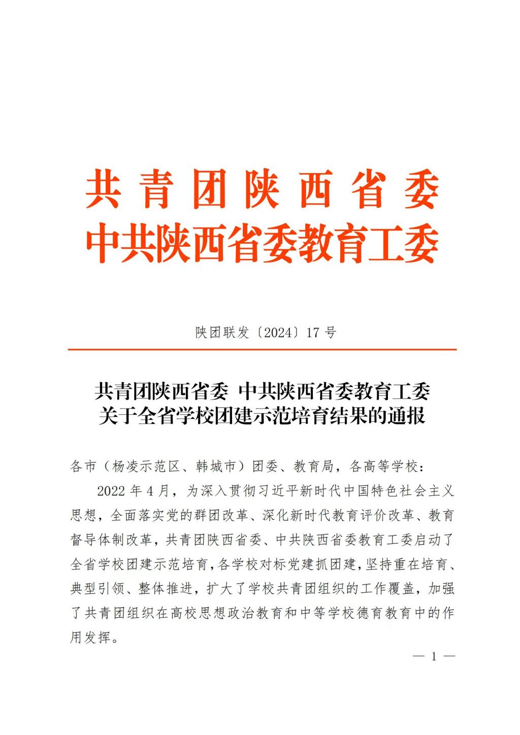 近日,共青团陕西省委、中共陕西省委教育工委联合印发了《关于全省学校团建示范单位培育结果的通报》,pp电子游戏平台网站团总支被确定为“全省高校团建标杆院系”,并授予荣誉奖牌。