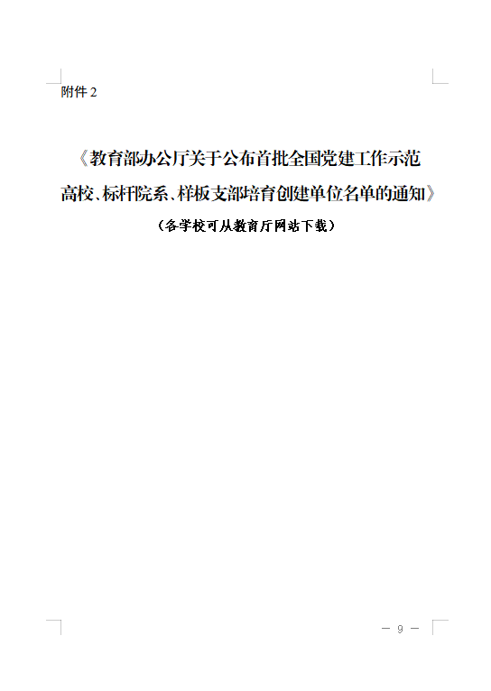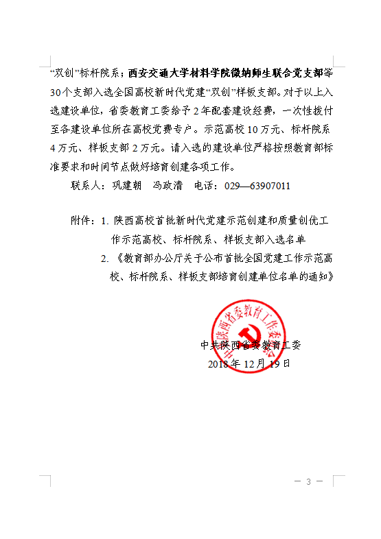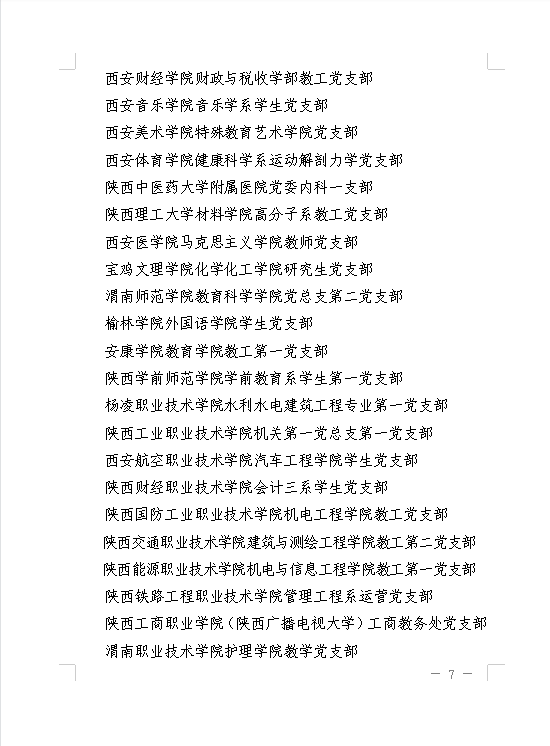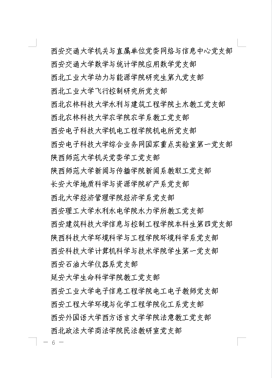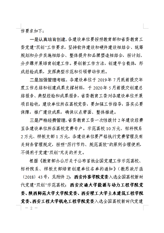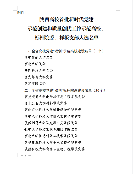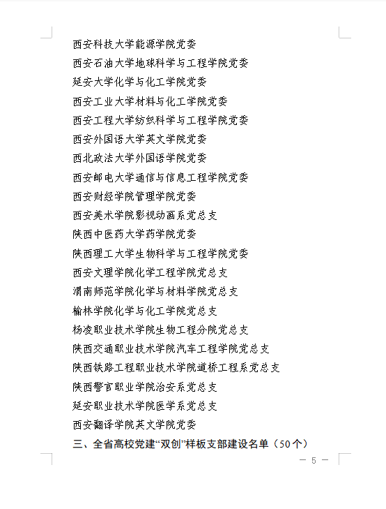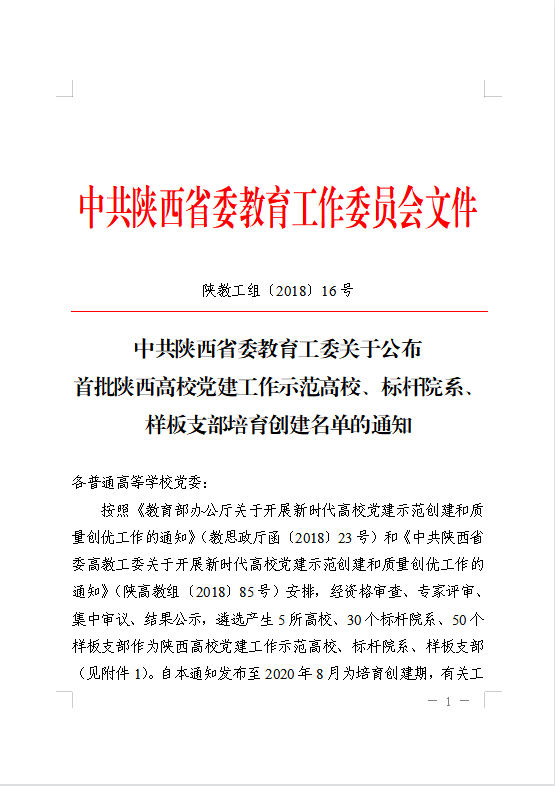 中共陕西省委教育工委关于公布 首批陕西高校党建工作示范高校、标杆院系、 样板支部培育创建名单的通知