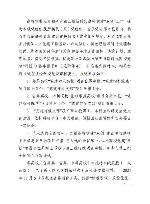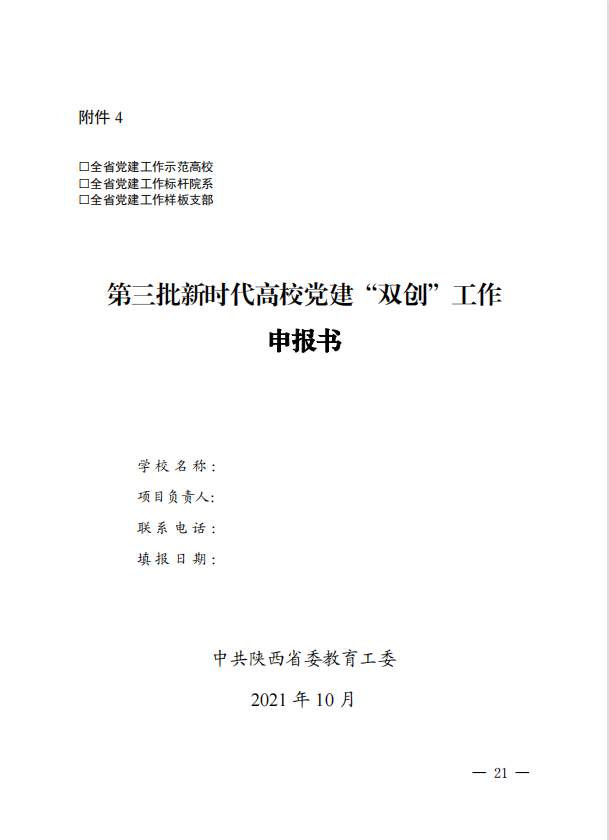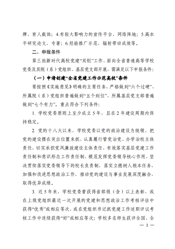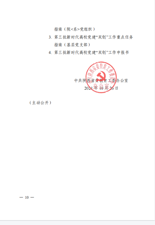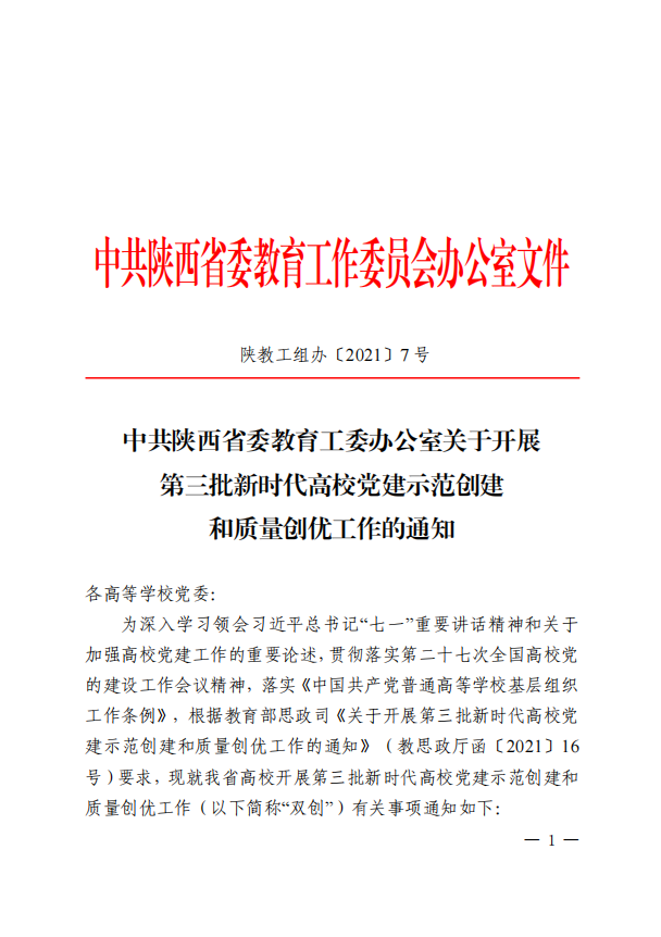 中共陕西省委教育工委办公室关于开展第三批新时代高校党建示范创建和质量创优工作的通知
