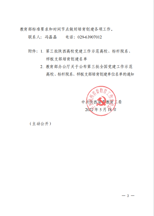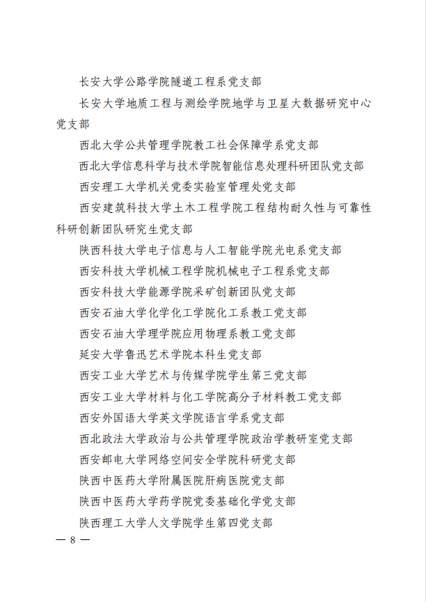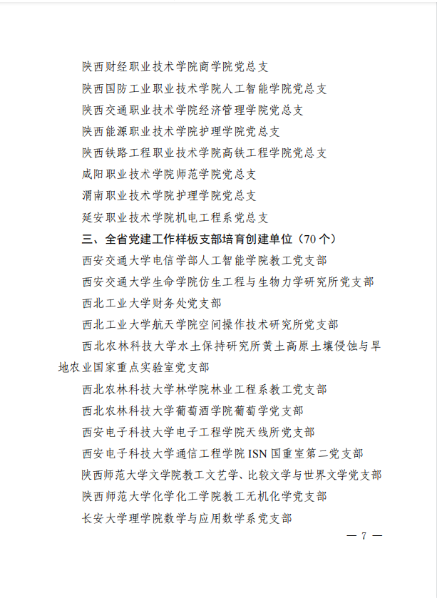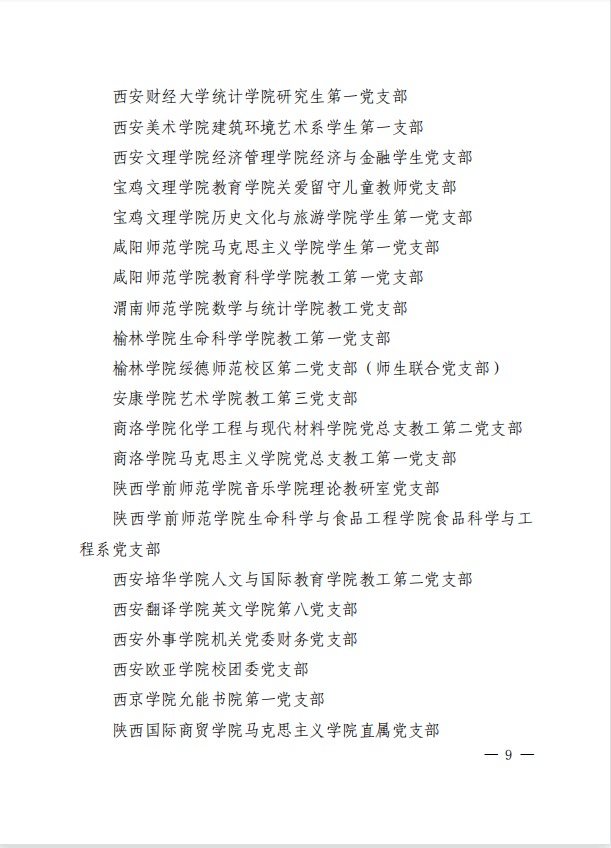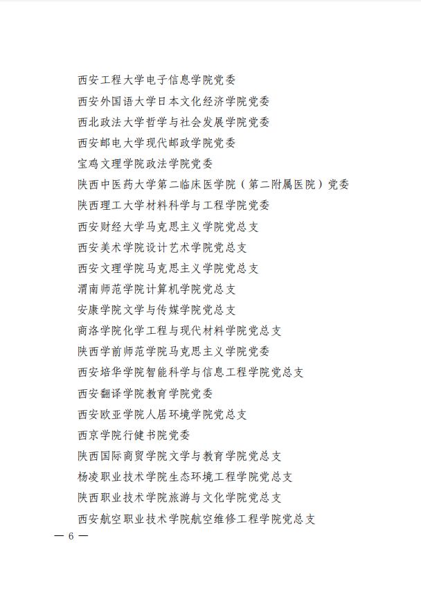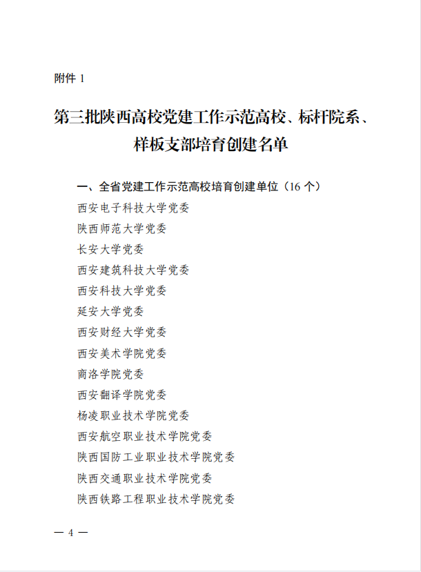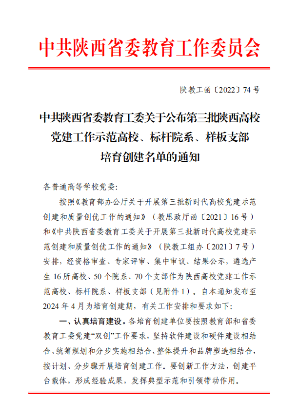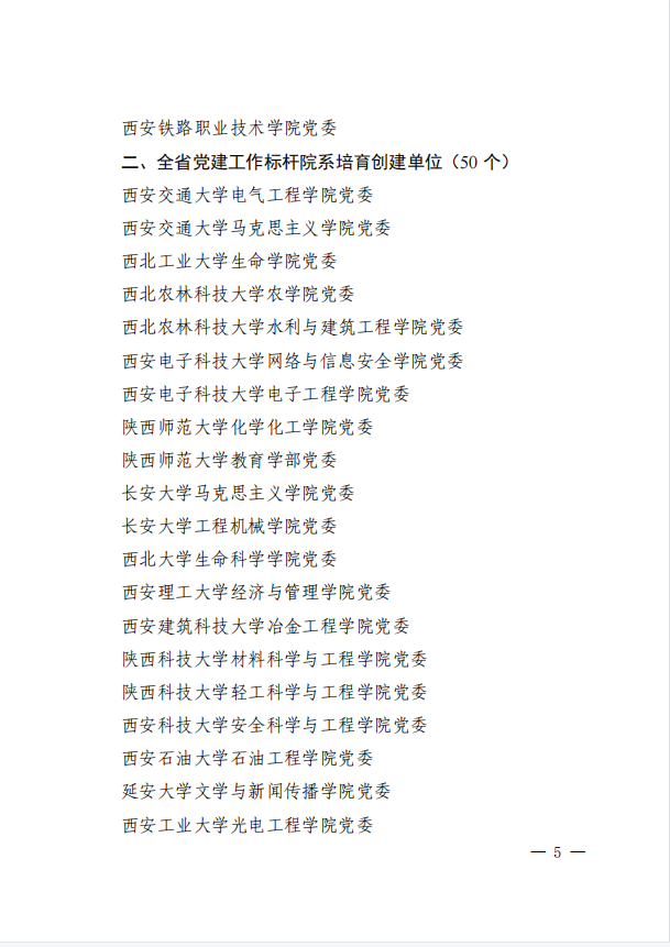 中共陕西省委教育工委关于公布第一批陕西高校党建工作示范高校、标杆院系、样板支部培育创建名单的通知