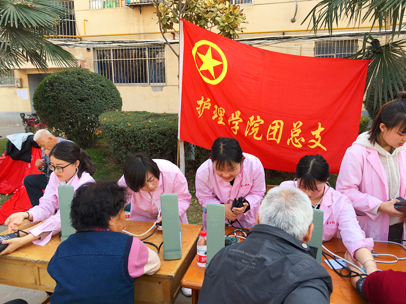 志愿者为老人测量血压