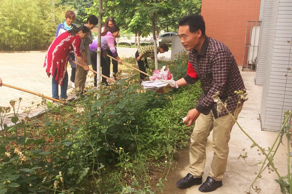 五月芳草萋萋,微风和煦,玉兰树苍翠挺立,蔷薇花灼灼绽放,pp电子党员在感受到初夏美好的同时,也看到悄然疯长的杂草。pp电子党总支为保护有“花园式校园”美称的美好环境,呼吁党总支红袖章志愿者志愿对玉兰园杂草、垃圾进行了清理,同志们一呼百应,齐聚玉兰园。他们仔细对杂草进行辨认,或借助工具,或徒手上前,对杂草进行了彻底清理。一番劳作之后,整洁的花园也令各位党员深感欣慰。