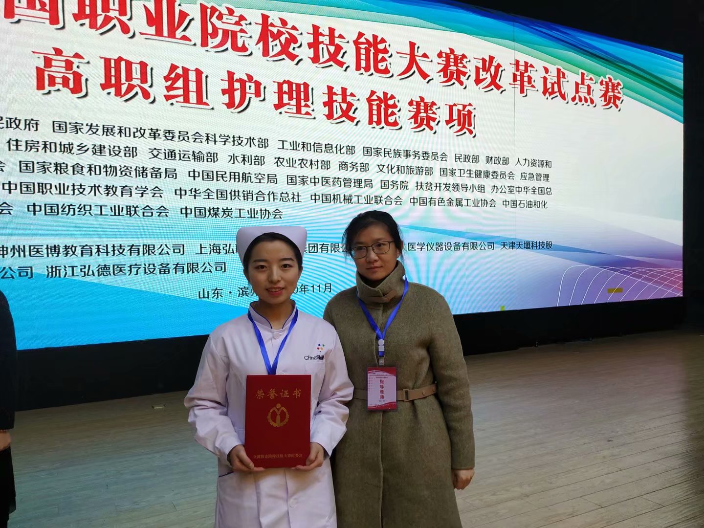 11月28日,2020年全国职业院校技能大赛改革试点赛高职组护理技能赛项在滨州职业学院落下帷幕。来自全国各省、市、自治区、计划单列市和新疆生产建设兵团的31支代表队,共31名选手同台竞技,切磋护理技能、展示专业风采。经过激烈角逐,共产生一等奖三项,二等奖六项,三等奖九项。pp电子游戏平台网站杨嘉盈同学代表陕西省参赛,经过顽强拼搏,荣获三等奖。
