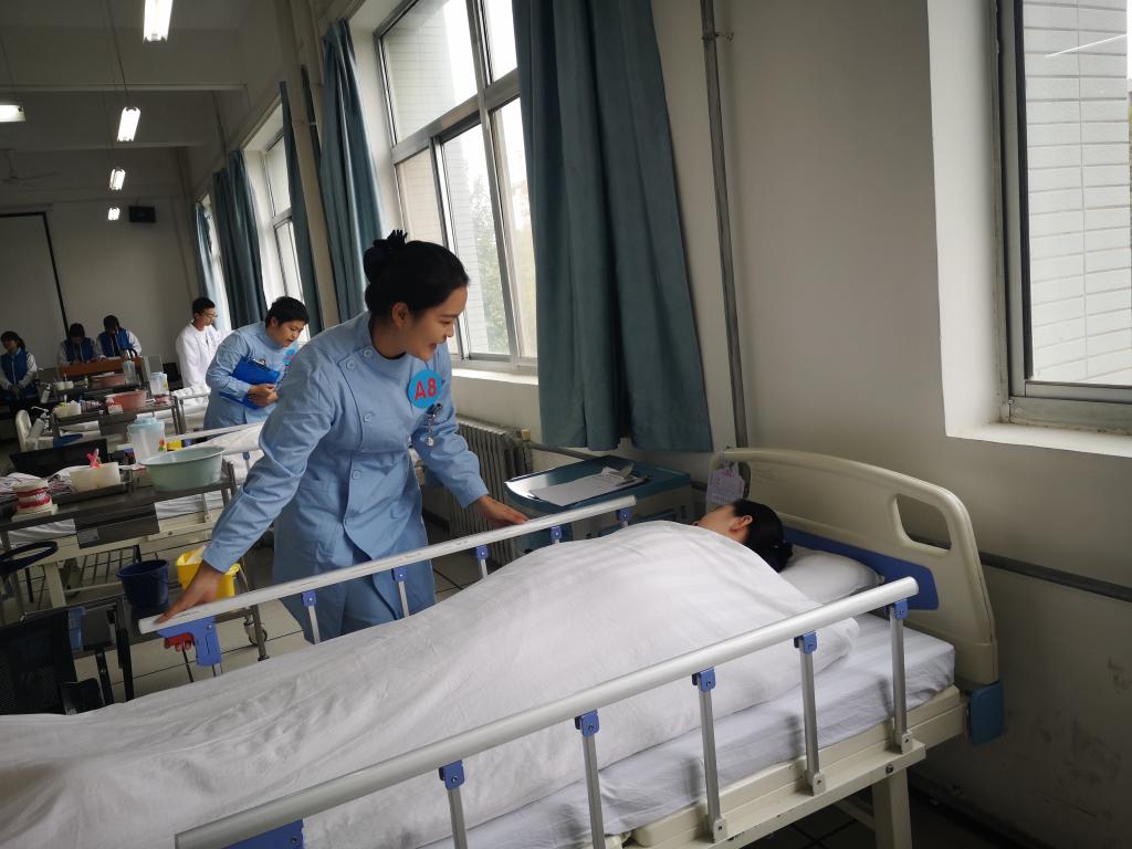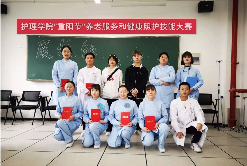 为弘扬尊老、敬老、孝老、爱老的优秀传统美德,按照《关于开展2021年技能大赛月活动的通知》(渭职院办发【2021】138号)精神,pp电子游戏平台网站2021年重阳节在医训楼北楼3楼举行了2021年校级养老服务和健康照护技能大赛。我校教务处王秋焕老师,pp电子游戏平台网站党总支书记吴运胜、院长张成、副院长吴亚飞、教学科长王媛、教学科副科长孙会娟出席了比赛,任秋爱等5名教师担任大赛评委,无课教师观摩了比赛。